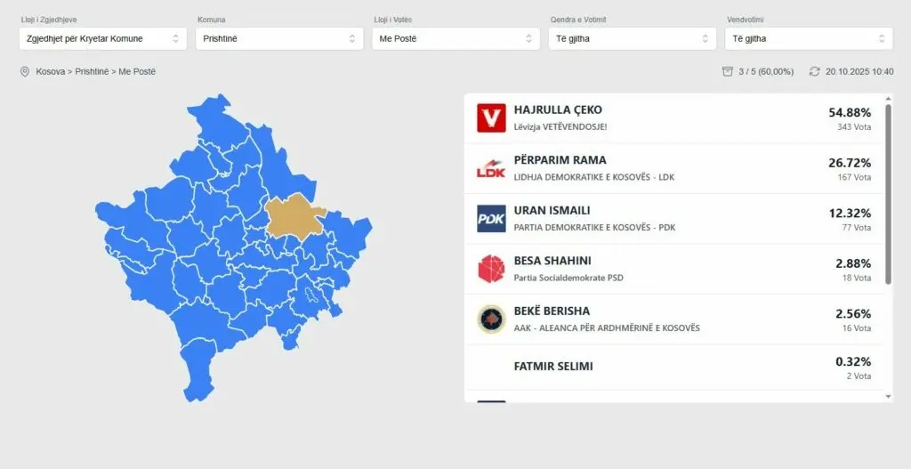 Në komunën e Prishtinës janë numëruar tashmë 60% e votave me postë.