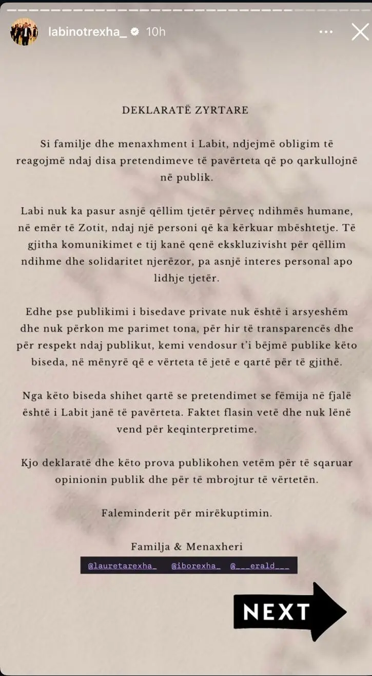 Por, çfarë fshihet pas këtyre pretendimeve? Familja e Labit ka reaguar me një postim në Instagram për të sqaruar situatën dhe për të hedhur poshtë akuzat e pabazuara.