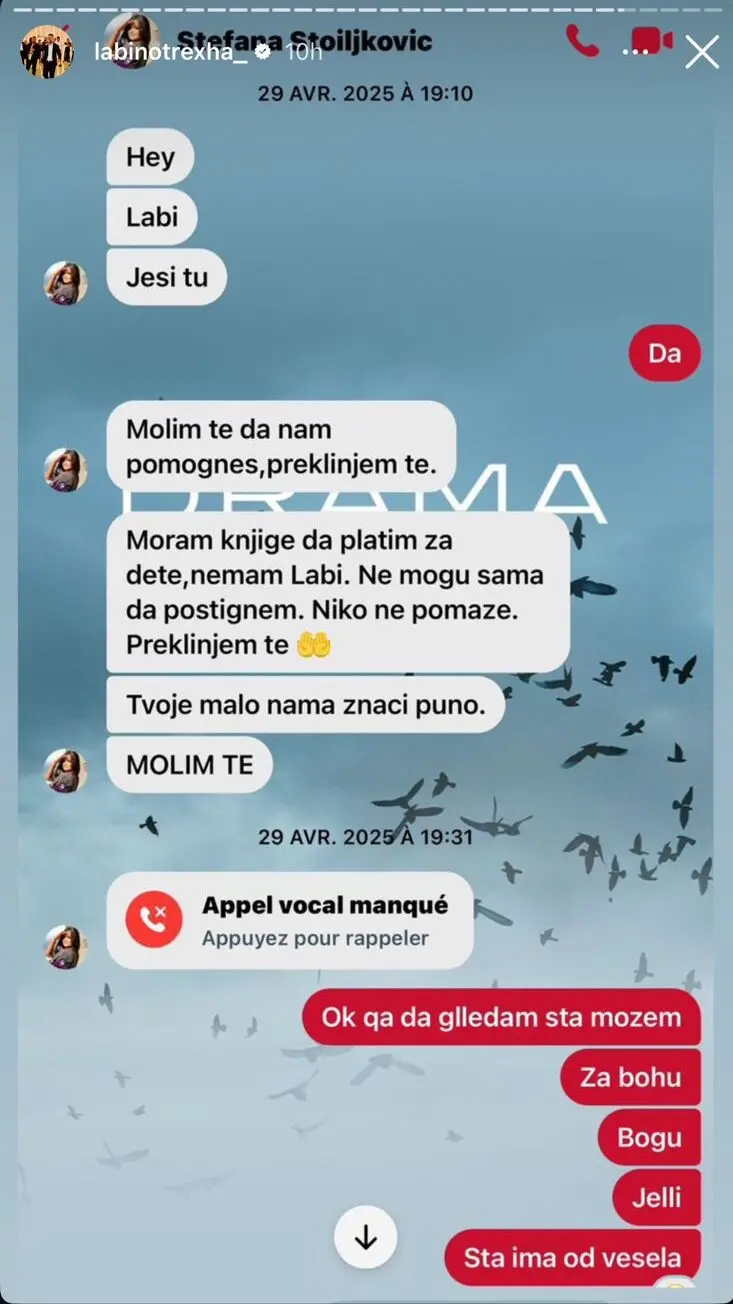 Për të vërtetuar pafajësinë e tij, menaxhmenti ka publikuar disa screenshots të bisedave private në Instagram midis Labit dhe gruas serbe, Stefana Stoiljkovic. Në këto mesazhe, ajo i kërkon ndihmë financiare për të paguar librat e fëmijës së saj, duke theksuar se ndihma e tij do të kishte një rëndësi të madhe për ta. Kjo situatë ngre pyetje mbi natyrën e marrëdhënies së tyre.