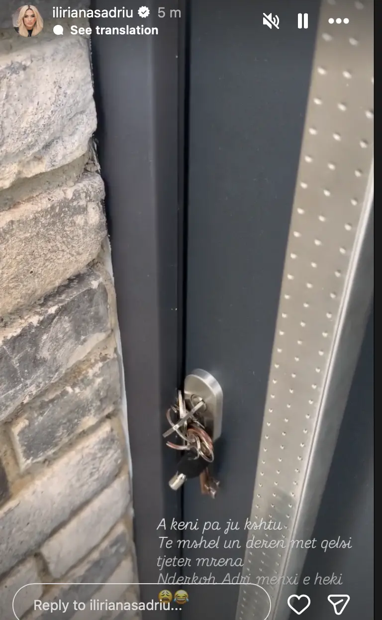 “A keni pa ju kështu. Te mshel unë derën met qelsi tjeter mrena. Ndërkohë Adri menxi e heki,” shkruan Iliriana në përshkrimin e videos, duke e bërë situatën edhe më qesharake.