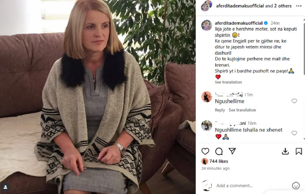 Shpirti yt i bardhë pushoftë në paqe!”, – ka shkruar Aferdita në postimin e saj, shoqëruar me një fotografi të motrës.