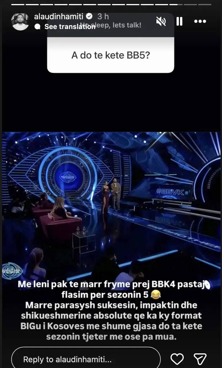 Moderatori i njohur, Alaudin Hamiti, ka qenë në qendër të këtyre diskutimeve. Gjatë një bashkëbisedimi virtual në Instagram, ai është përballur me pyetje të drejtpërdrejta nga ndjekësit, siç ishte ajo që pyeste: “A do të ketë BB5?”. Kjo tregon se interesi për sezonin e ardhshëm është shumë i lartë.