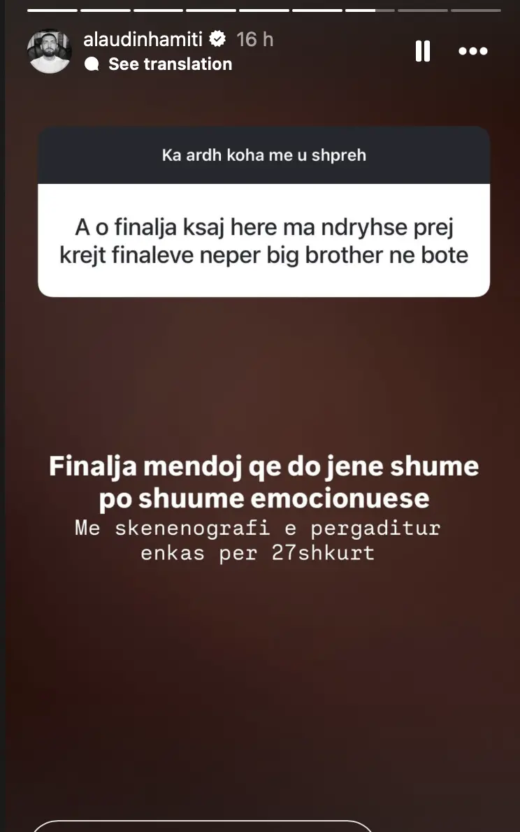 Gjatë një bashkëbisedimi interaktiv në Instagram, Alaudini u pyet nëse kjo finale do të jetë ndryshe nga ato të mëparshmet në formatin “Big Brother”.