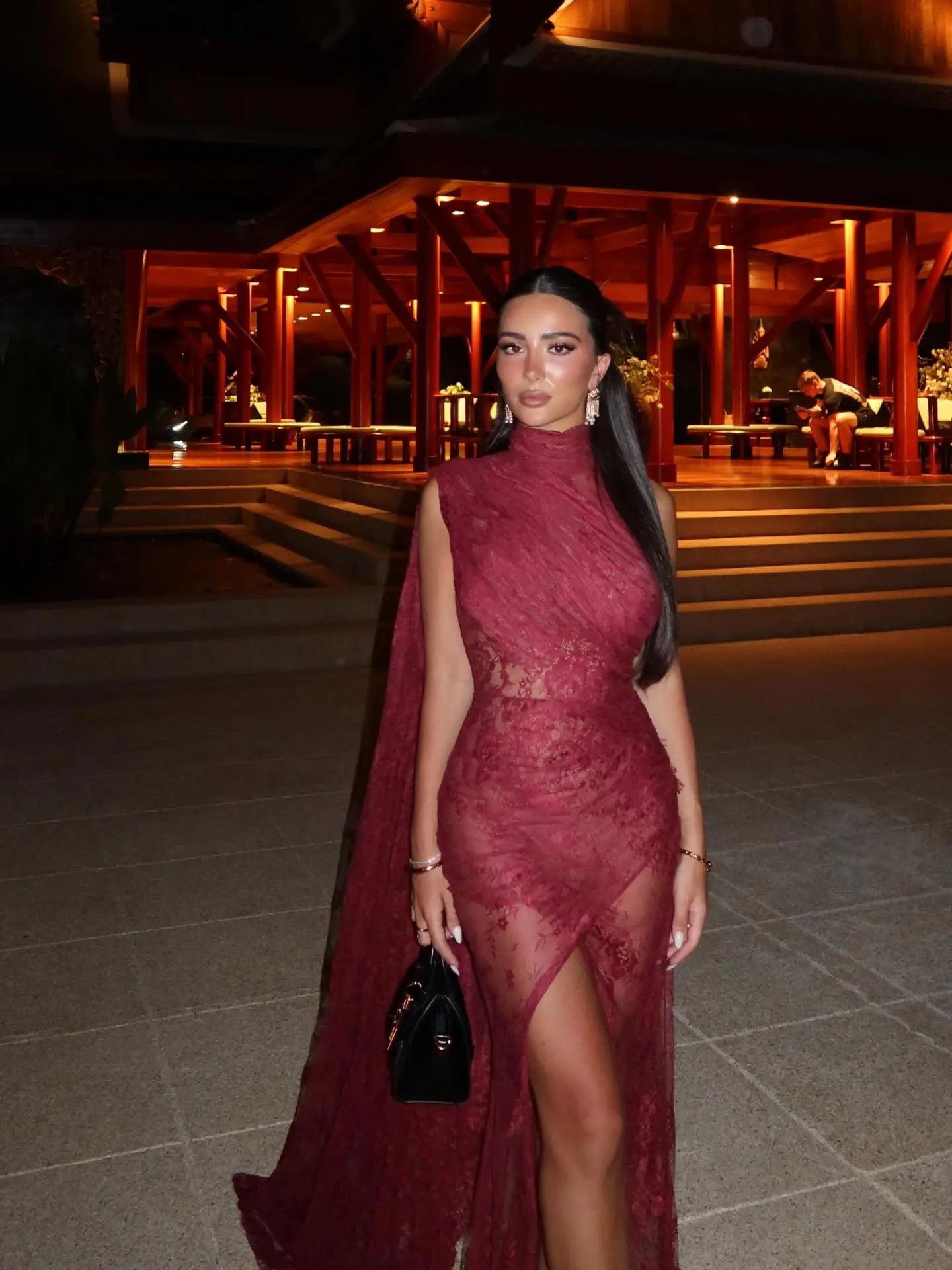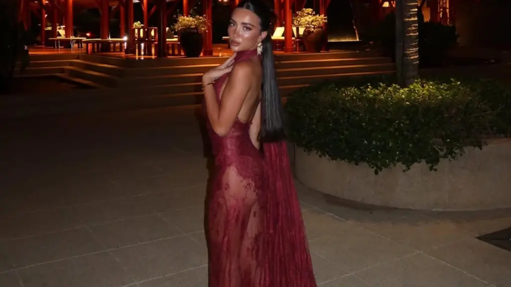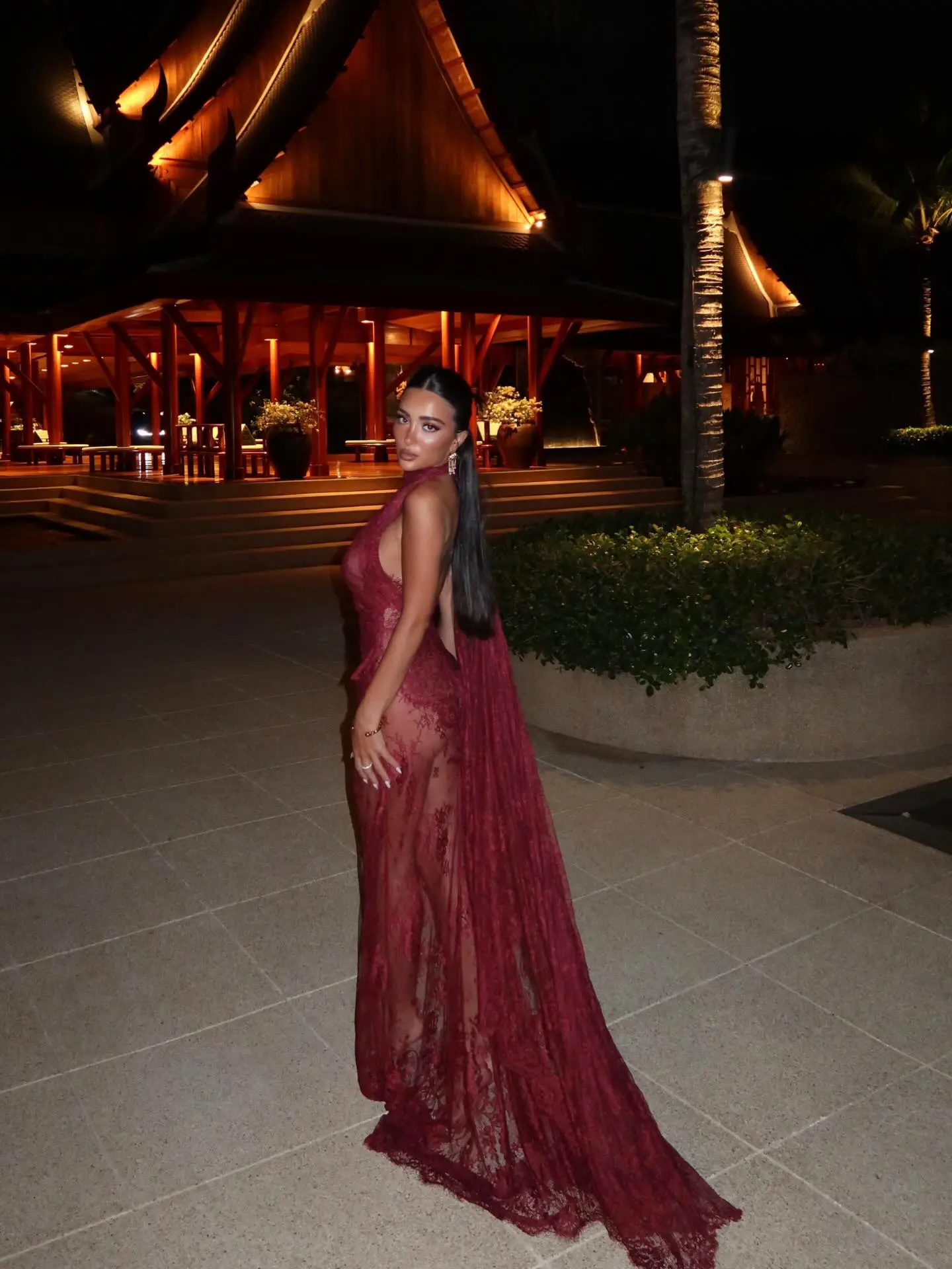 Ajo ka zgjedhur një fustan të gjatë transparent, i cili theksonte linjat e saj trupore në një ambient luksoz në Tailande.