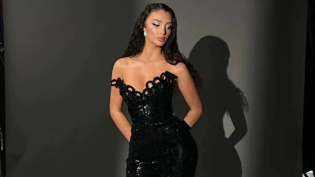 Në këtë imazh, Ana shfaqet e veshur me një fustan elegant të zi, që thekson format e saj të përkryera, duke ngacmuar imagjinatën e shumëkujt.