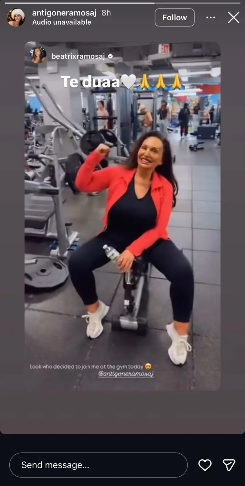 Ishte vajza e saj, Beatrixa, ajo që ndau një moment emocionues në Instagram Story, ku shihet Antigona e buzëqeshur dhe plot energji brenda një salle palestre. Kjo pamje tregon se, pavarësisht vështirësive, ajo ka zgjedhur të mbetet aktive dhe pozitive.