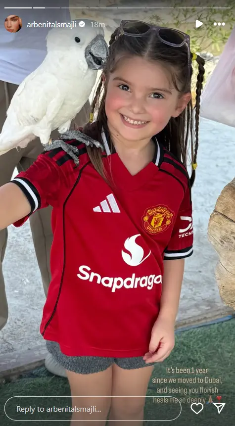 “Janë bërë një vit që jemi shpërngulur në Dubai, dhe duke të parë ty që po lulëzon, po shërohem thell”, ka shkruar Arbenita në postimin e saj në Instagram, duke treguar se si ky vend ka sjellë ndryshime pozitive në jetën e tyre.