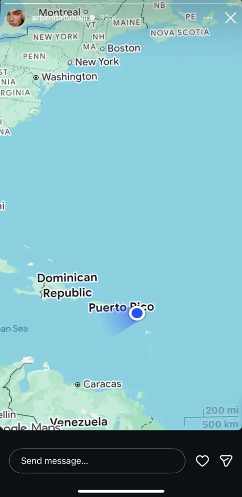 Me anë të një fotografie tregoi që gjendet në Puerto Rico, një vend i nxehtë bregdetar.
