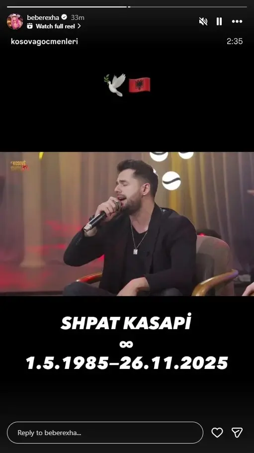 Bashkë me videon, Bebe Rexha ka vendosur një emoji të një pëllumbi dhe flamurit shqiptar, një simbolikë që përfaqëson qartë ngushëllimin dhe respektin e saj për artistin e ndjerë.