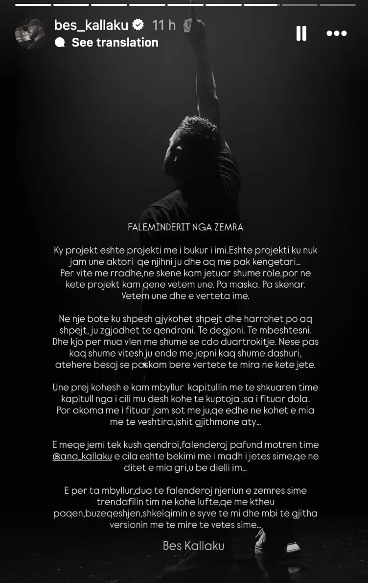 Në një status të gjatë në Instastory, ai ka shpjeguar se ky projekt është një reflektim i vërtetë i tij, pa asnjë maskë. “Në këtë projekt kam qenë vetëm unë. Pa maska. Pa skenar. Vetëm unë dhe e vërteta ime,” ka shkruar ai, duke falënderuar publikun për mbështetje.