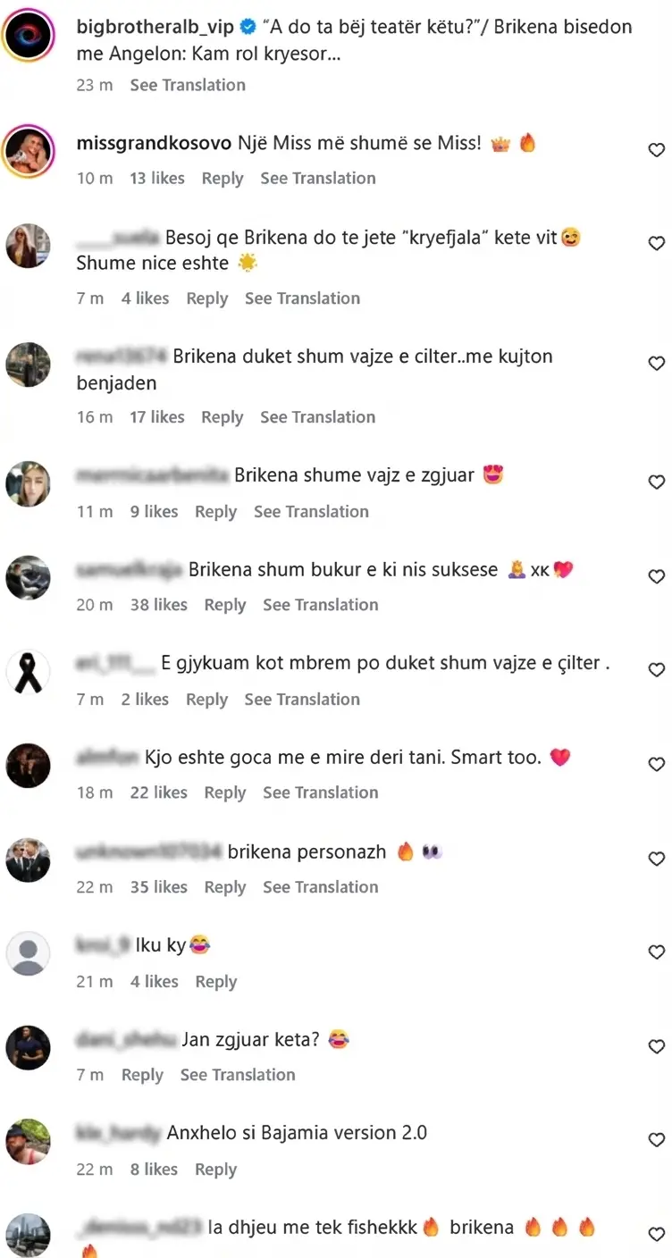 “Besoj që Brikena do të jetë kryefjala këtë vit,” shkruan një ndjekëse. Të tjerë e cilësojnë si “Goca më e mirë deri tani. E zgjuar gjithashtu.” Ky lloj feedback-u tregon se si ajo po e fiton simpatinë e publikut.