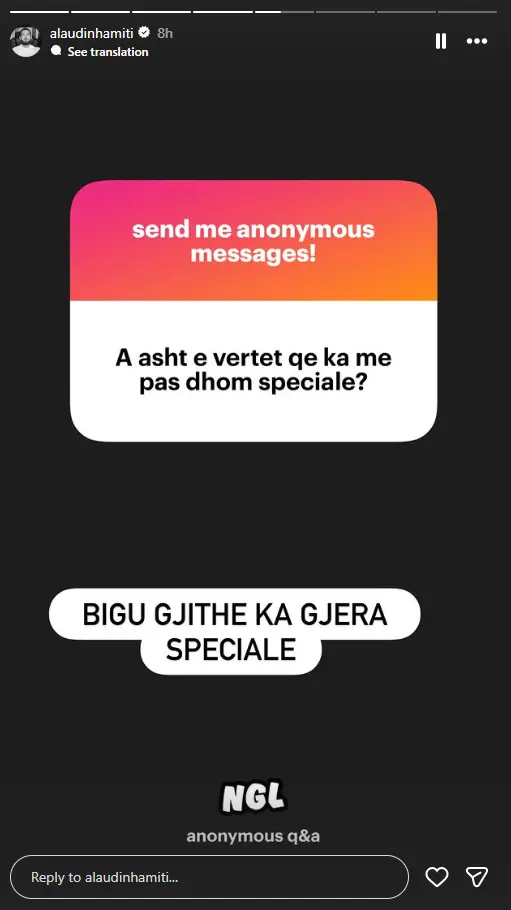 Moderatori i Big Brother VIP Kosova, Alaudin Hamiti, ka hapur një dritare të re për ndjekësit e tij në Instagram, duke pranuar pyetje rreth spektaklit që fillon nesër.