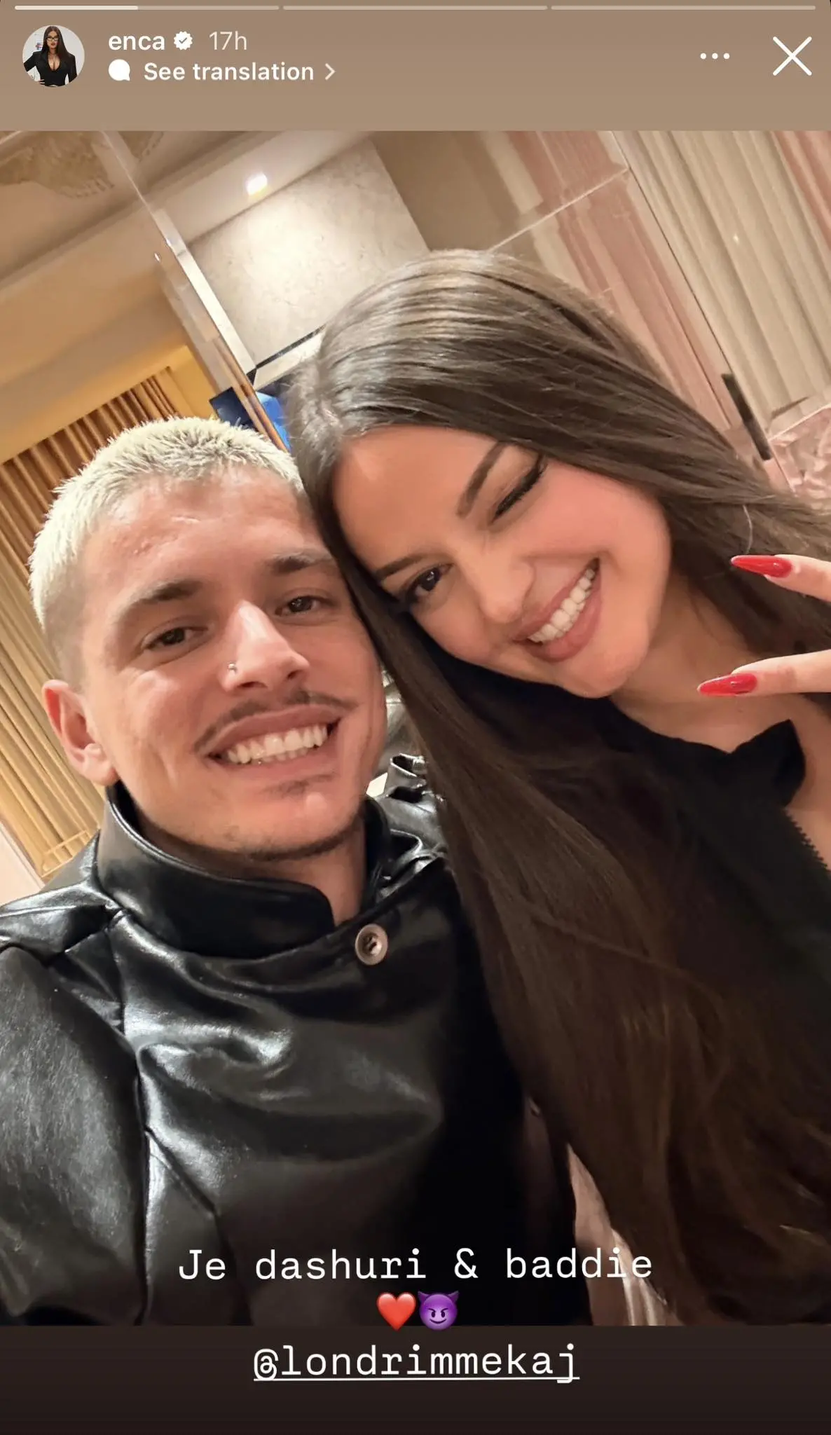 Fotografia e publikuar nga Enca tregon dyshën pranë njëri-tjetrit në një ambient të ngrohtë dhe miqësor.