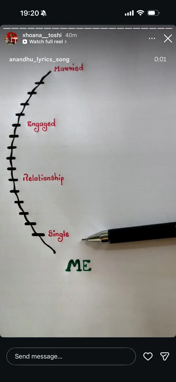 Duke përdorur Instagramin, ajo ndau një postim ku ilustronte statuset e ndryshme të marrëdhënieve dhe theksoi se është “Single” (Beqare).