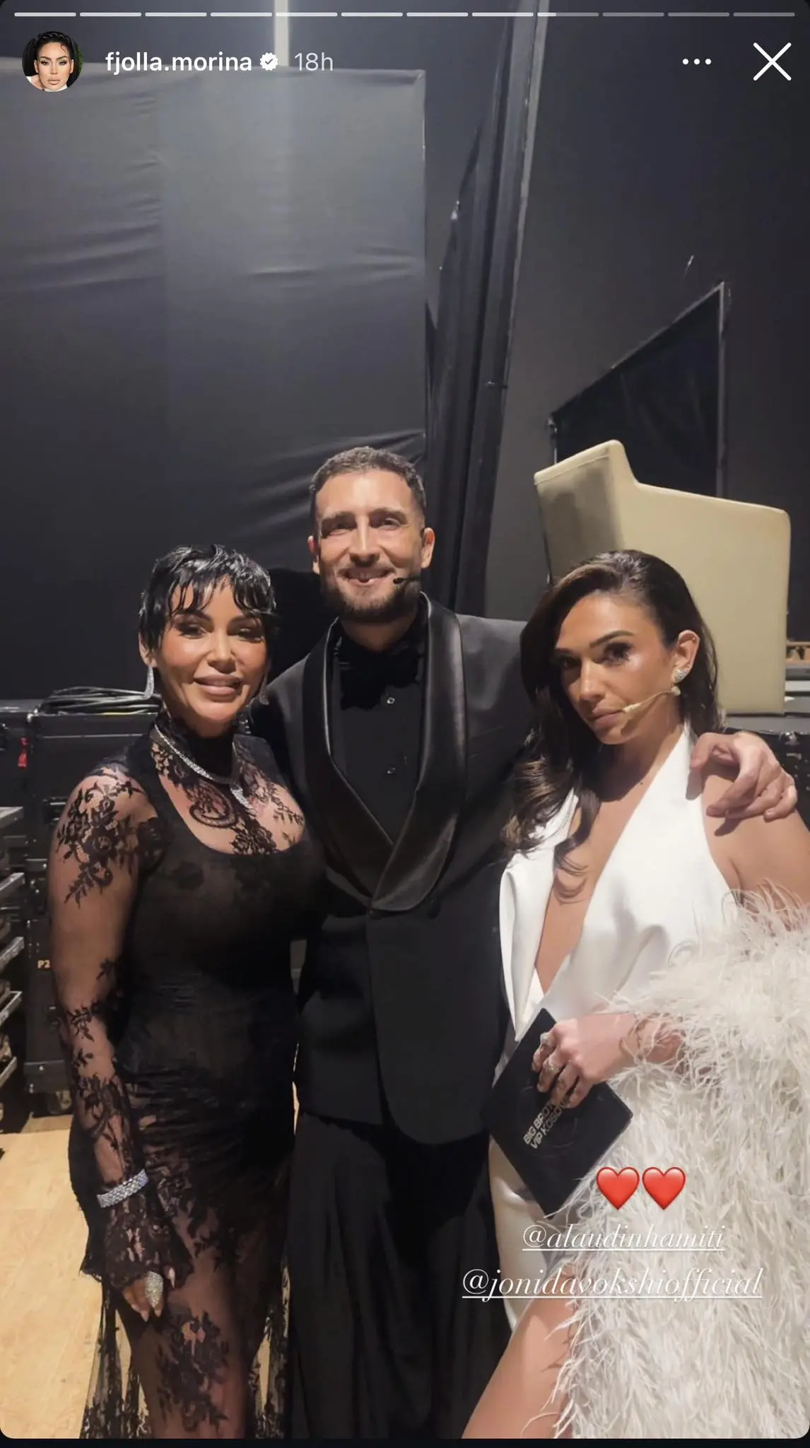 Fotografia e realizuar pas përfundimit të natës finale tregon një skenë të veçantë. Fjolla Morina shfaqet e buzëqeshur, duke reflektuar energjinë pozitive të natës, ndërsa Jonida Vokshi duket më serioze, një kontrast që ka tërhequr vëmendjen e të pranishmëve dhe ndjekësve në rrjetet sociale.