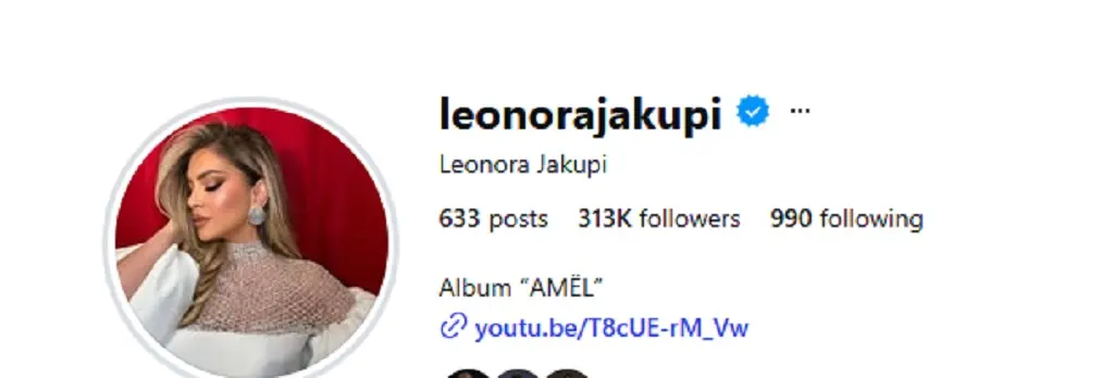 Ndërkohë, Leonora Jakupi, një ndër figurat më të dashura të skenës muzikore shqiptare dhe pjesë e panelit të “BBVK+së, numëron 313 mijë ndjekës.