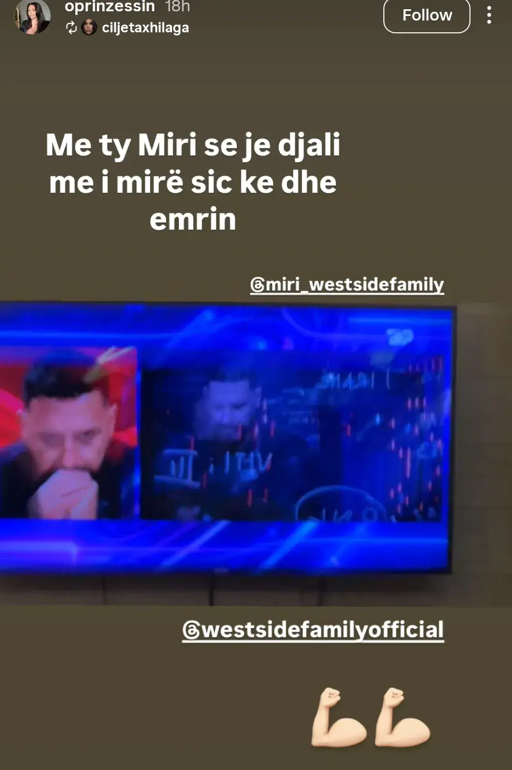 Përmes një postimi në llogarinë e saj në InstaStory, ku shihet teksa ndjek me vëmendje ekranin gjatë këtij transmetimi, ajo ka ndarë një mesazh mjaft të ngrohtë dhe vlerësues për të.