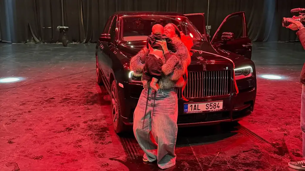 Ajo pozon me djalin e saj para kësaj makine luksoze, duke e bërë momentin edhe më të veçantë. Kjo skenë ka tërhequr vëmendjen e shumë ndjekësve të saj.