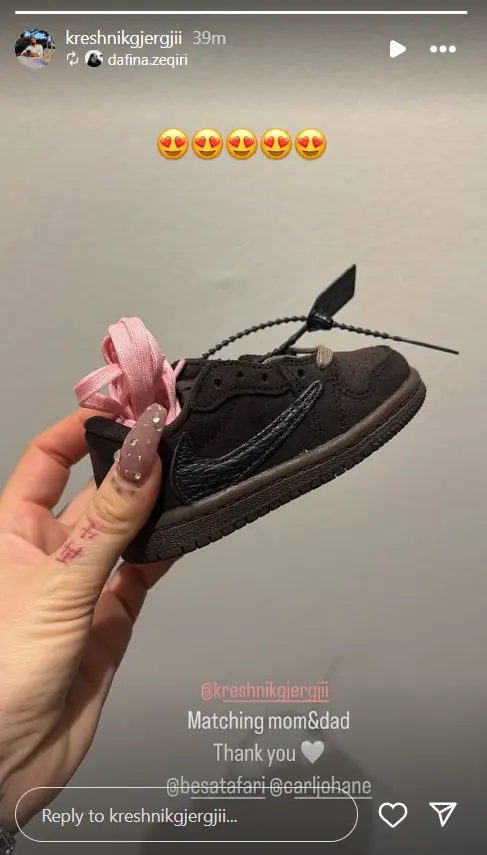 Një nga detajet më të veçanta të kësaj dhurate është fotografia që Dafina ndau në rrjetet sociale. Ajo tregonte disa atlete të vogla, të njëjta me ato të saj dhe bashkëshortit Kreshnik Gjergji.