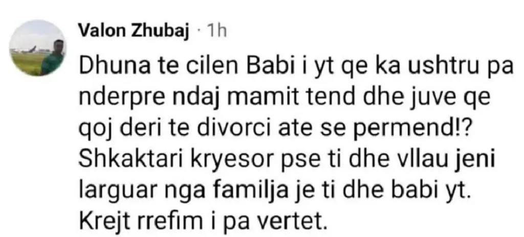 Sipas tij arsyeja e ndarjes ishte dhu.na nga babai i saj që po ushtronte ndaj fëmijëve dhe bashkëshortes së tij. Shiko foton me poshte per postimin e plote.