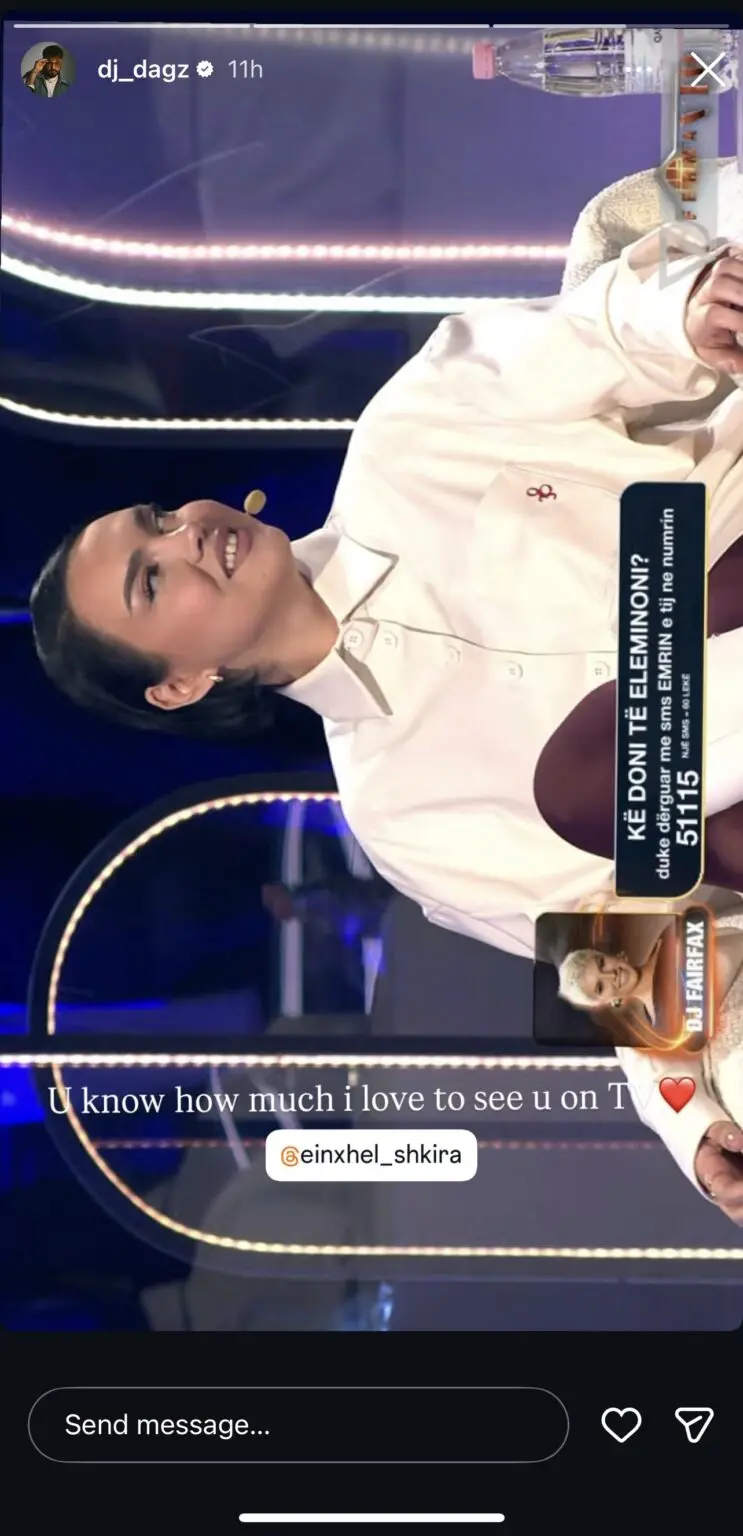 Bashkëshorti i njohur i Einxhel Shkira, DJ Dagz, ka ndarë një moment emocionues në rrjetet sociale, duke publikuar një foto të saj si opinioniste në sezonin e tretë të ‘Ferma VIP’.