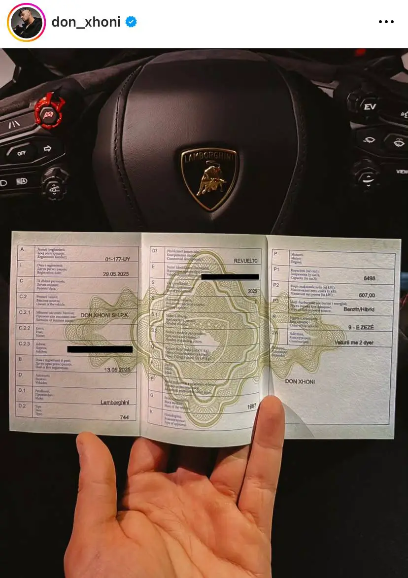 Makina e re duket se është një investim i radhës nga Don Xhoni, i cili nuk ngurron të shfaqë suksesin edhe në këtë formë.