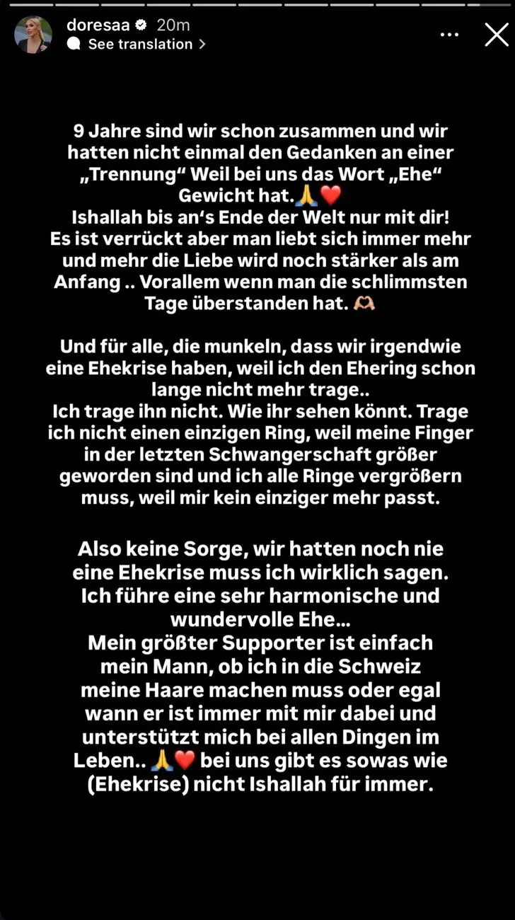 Në një postim emocionues, Doresa ka hedhur poshtë kategorikisht idenë e një “krize bashkëshortore”.