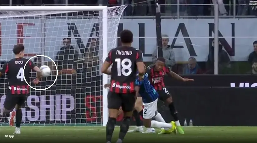 Rasti më i diskutueshëm erdhi në minutën e 95-të, kur Ricci preku topin me dorë në zonë. Edhe pse dora e tij ishte pranë trupit, shumë e panë si një prekje të qëllimshme. VAR-i nuk e thirri Doverin për këtë episod, duke shkaktuar një tjetër valë të fortë reagimesh nga ana e Interit, që ndiheshin të tradhtuar nga vendimi i tij.