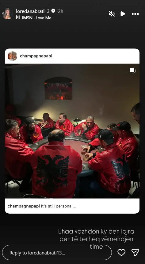Modelja e njohur Loredana Brati ka reaguar me humor pas publikimit të një fotografie nga reperi kanadez Drake, ku ai shfaqet me një grup burrash rreth një tavoline pokeri, të veshur me xhaketa të kuqe që mbajnë simbolin e shqiponjës dykrenare.