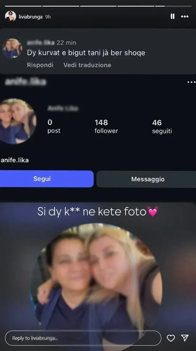 Komenti, “Dy k***at e Bigut tani janë bërë shoqe”, e detyroi atë të reagojë me forcë dhe vendosmëri. Si një figurë publike, Livia ka treguar se është e gatshme të mbrojë imazhin e saj dhe të mos lejojë që sulmet të ndikojnë në karrierën e saj.
