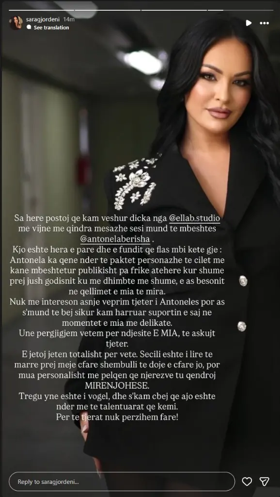 Pas një periudhe të gjatë heshtjeje, Sara ka vendosur të reagojë përmes një postimi të gjatë në Instagram, ku shpreh shqetësimin e saj për komentet negative që merr çdo herë që poston diçka në lidhje me Antonelën.