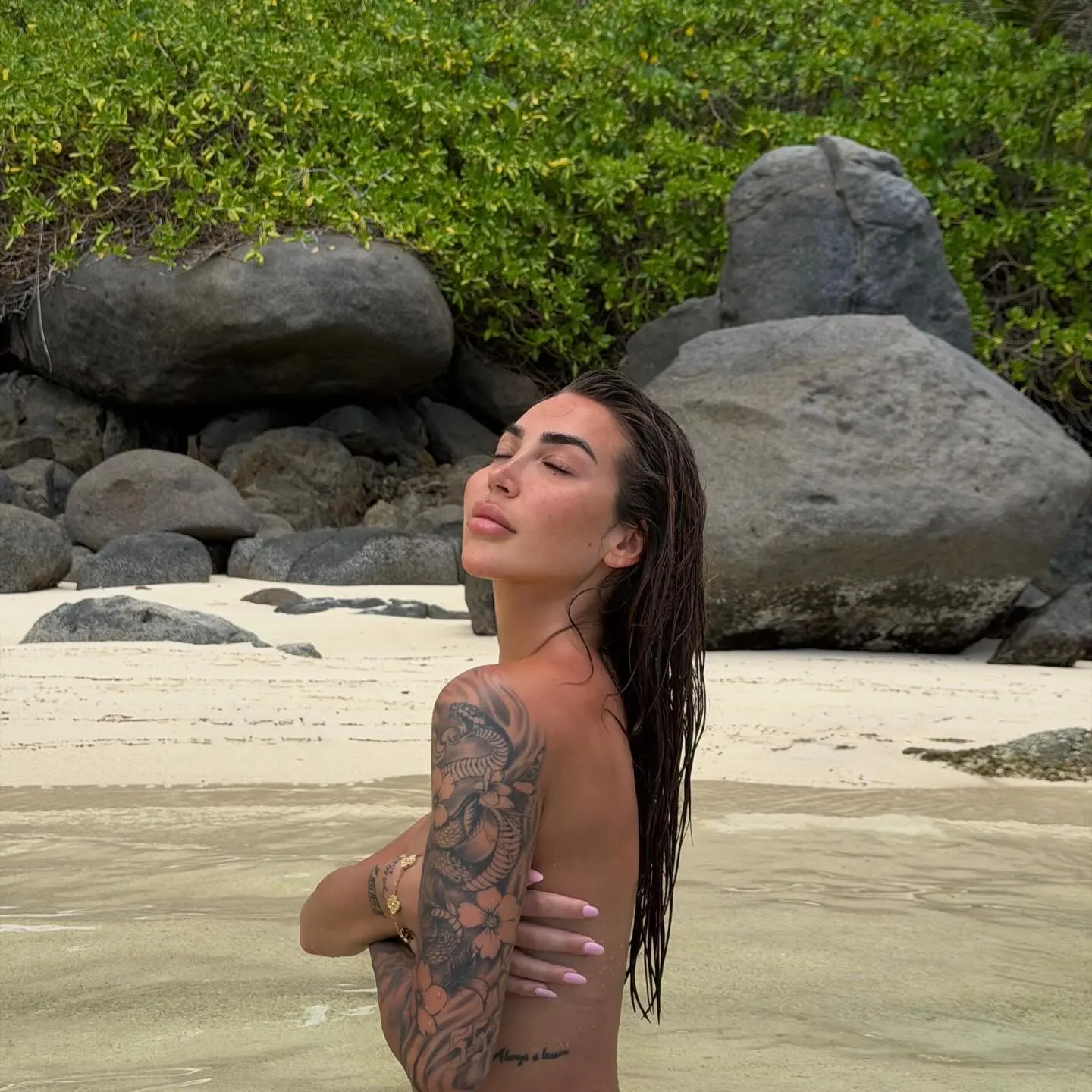 Fotot e saj janë të mbushura me provokim, ku ajo mbulon vetëm gjoksin me duar, ndërsa në imazhe të tjera ekspozon asetet e saj trupore në një mënyrë të guximshme.