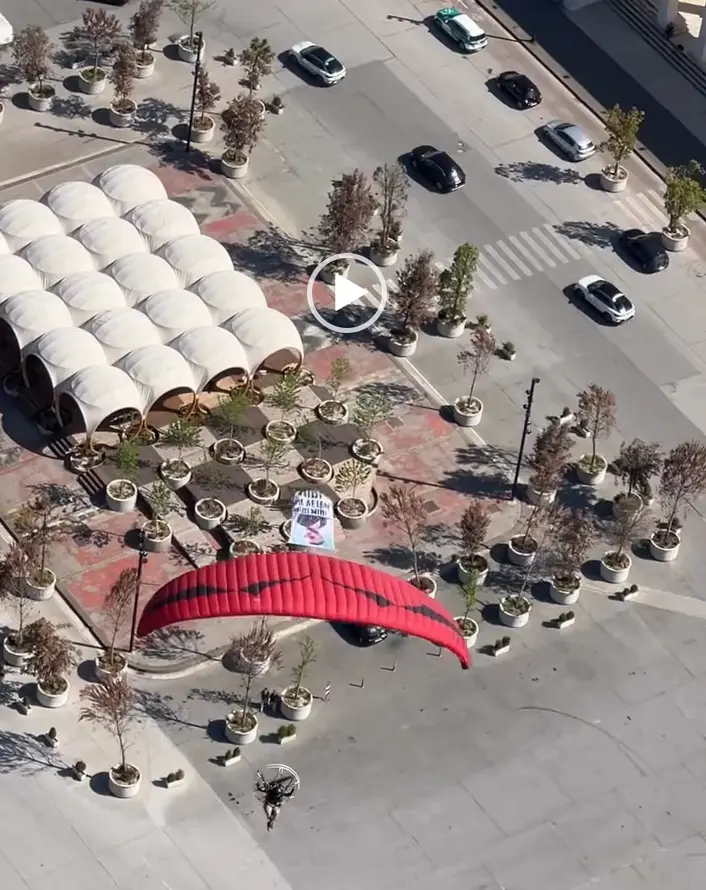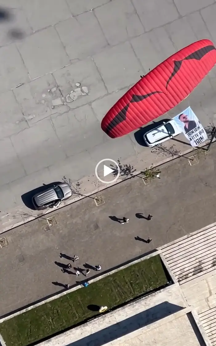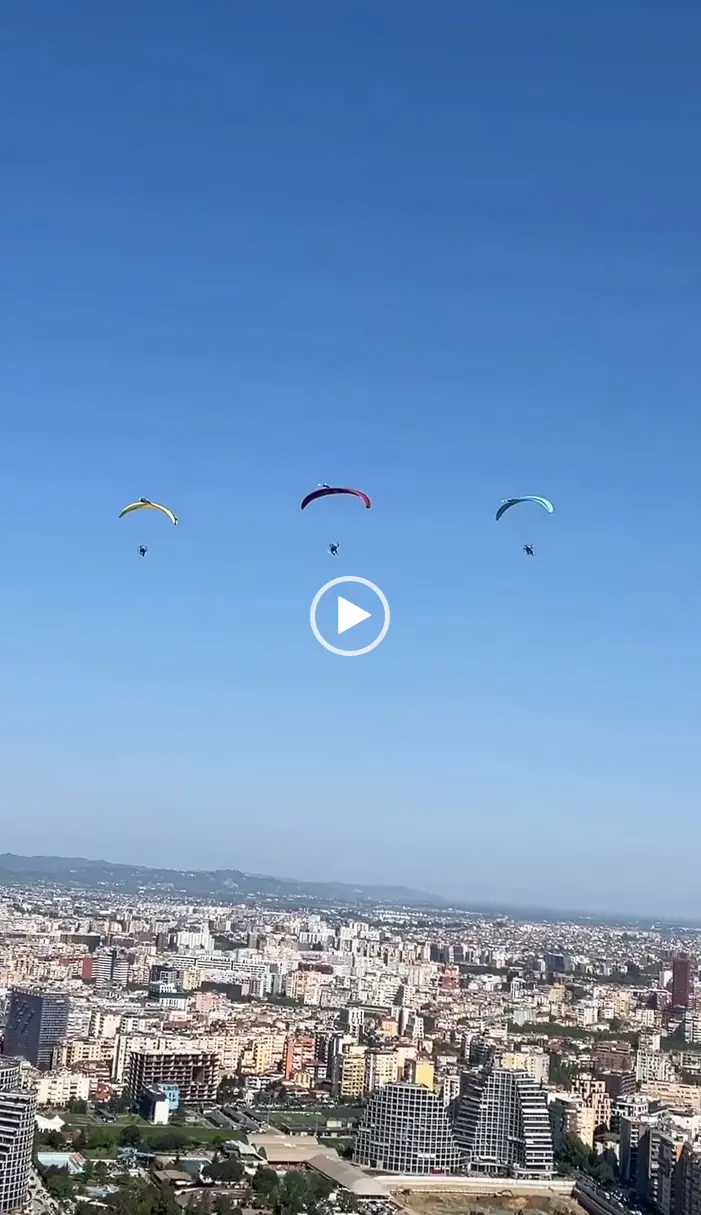 Disa parashuta me motor kanë fluturuar mbi zonat më kryesore të qytetit, duke tërhequr menjëherë vëmendjen e mijëra qytetarëve.