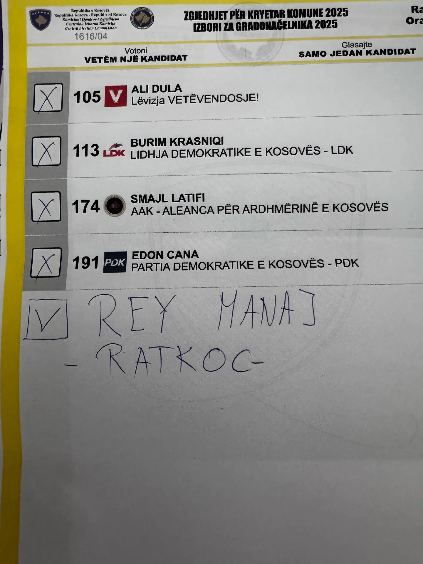 Në një ngjarje të pazakontë që ka tërhequr vëmendjen e publikut, një qytetar ka vendosur të shprehë preferencat e tij politike në një mënyrë të veçantë gjatë zgjedhjeve lokale. Ai ka shkruar emrin e futbollistit të njohur të Kombëtares shqiptare, Rey Manaj, në fletëvotim, duke e votuar atë si kandidatin e tij të preferuar për kryetar komune.