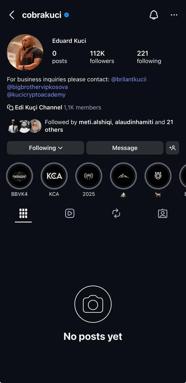 Por, surpriza nuk mbaron këtu. Në një veprim të papritur, ai ka fshirë të gjitha postimet nga llogaria e tij në Instagram, duke e lënë atë të zbrazët. Kjo lëvizje ka bërë që shumë të pyesin: Çfarë po ndodh me Edi Kuçin?