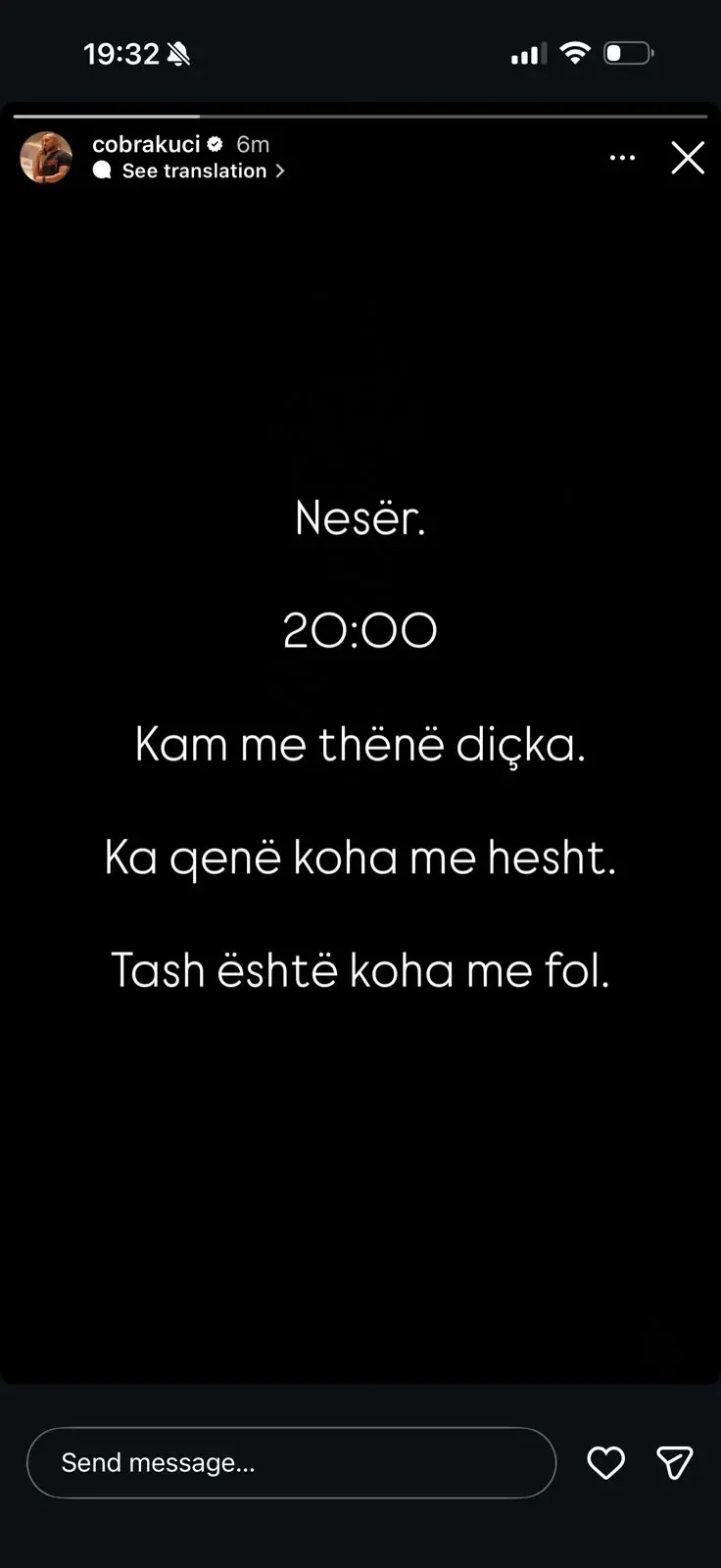 Me një mesazh të shkurtër, Edi ka shkruar: “Nesër. 20:00. Kam me thënë diçka. Ka qenë koha me hesht. Tash është koha me fol.” Kjo frazë e thjeshtë, por e fuqishme, sugjeron se ai ka shumë për të thënë dhe se ndjenjat e tij janë të forta pas përvojës në shtëpi.