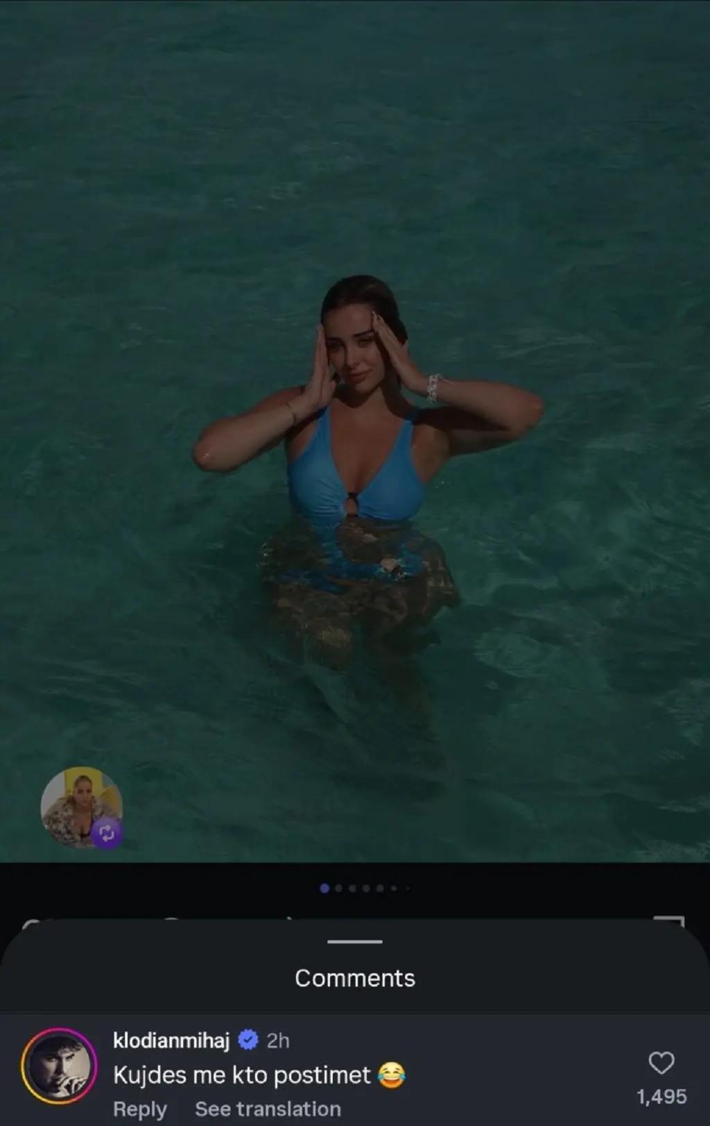Elijona siç dihet ka udhëtuar drejt Egjiptit për pushime, nga ku ka publikuar disa fotografi. Në këtë postim, Klodi ka lënë një koment ngacmues duke i shkruar: “Kujdes me këto postimet”, shoqëruar me një emoji duke qeshur.