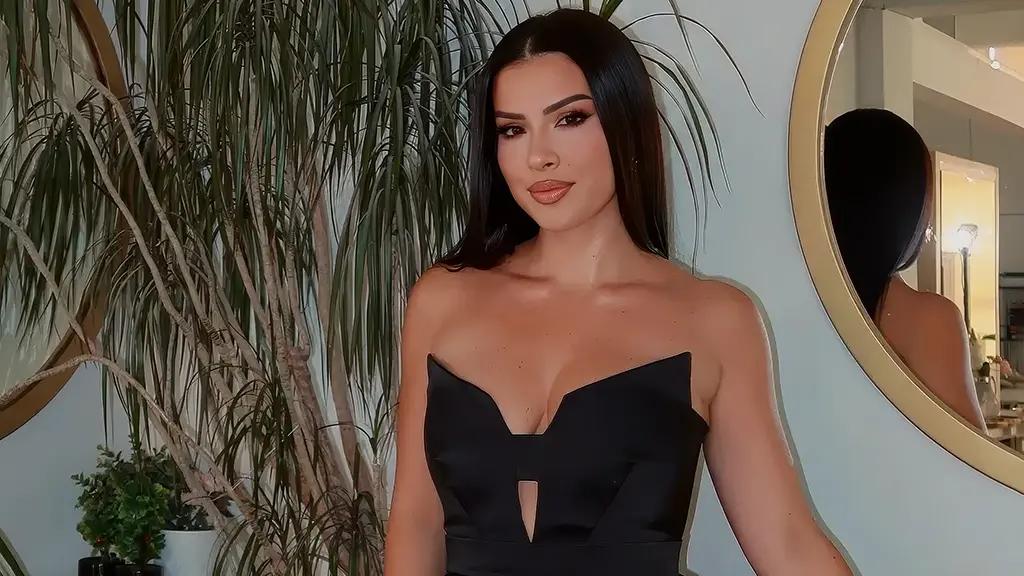 Veshur me një fustan elegant të zi, ajo shfaqet me një pamje mbresëlënëse, duke vënë në pah bukurinë e saj të përhershme.