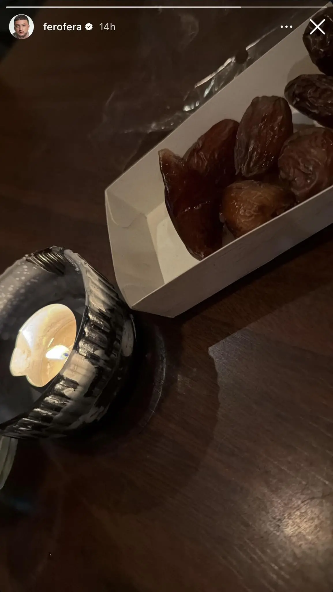 Me nisjen e muajit të Ramazanit, Fero ka ndarë një fotografi ku shihen hurma dhe ujë, duke bërë të ditur se po agjëron.