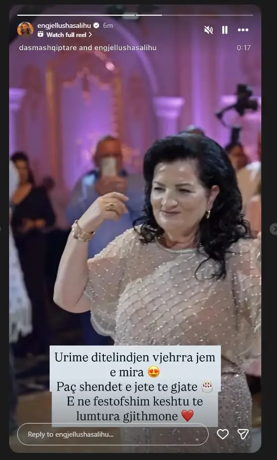 Përmes një videoje të ndarë në Instastory, e cila është regjistruar gjatë festës së dasmës së saj, Engji ka zgjedhur të ndajë këtë moment të veçantë me ndjekësit e saj, duke i dhënë rëndësi lidhjes familjare dhe respektit që ka për vjehrrën.