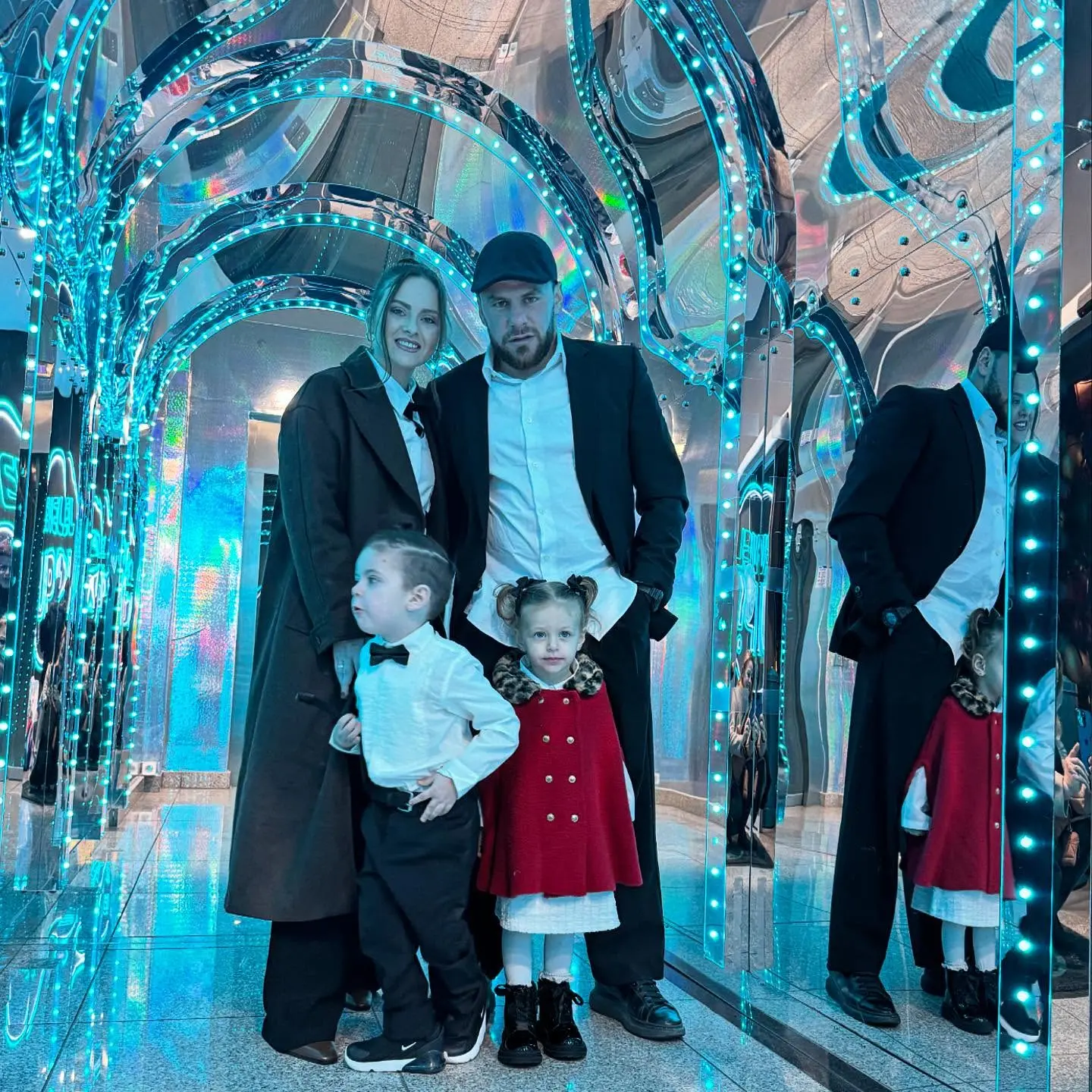 Në një postim emocionues, ai shfaqet pranë bashkëshortes dhe dy fëmijëve të tij të vegjël, të cilët duken plot buzëqeshje dhe ngrohtësi, duke sjellë një atmosferë të këndshme dhe të dashur.