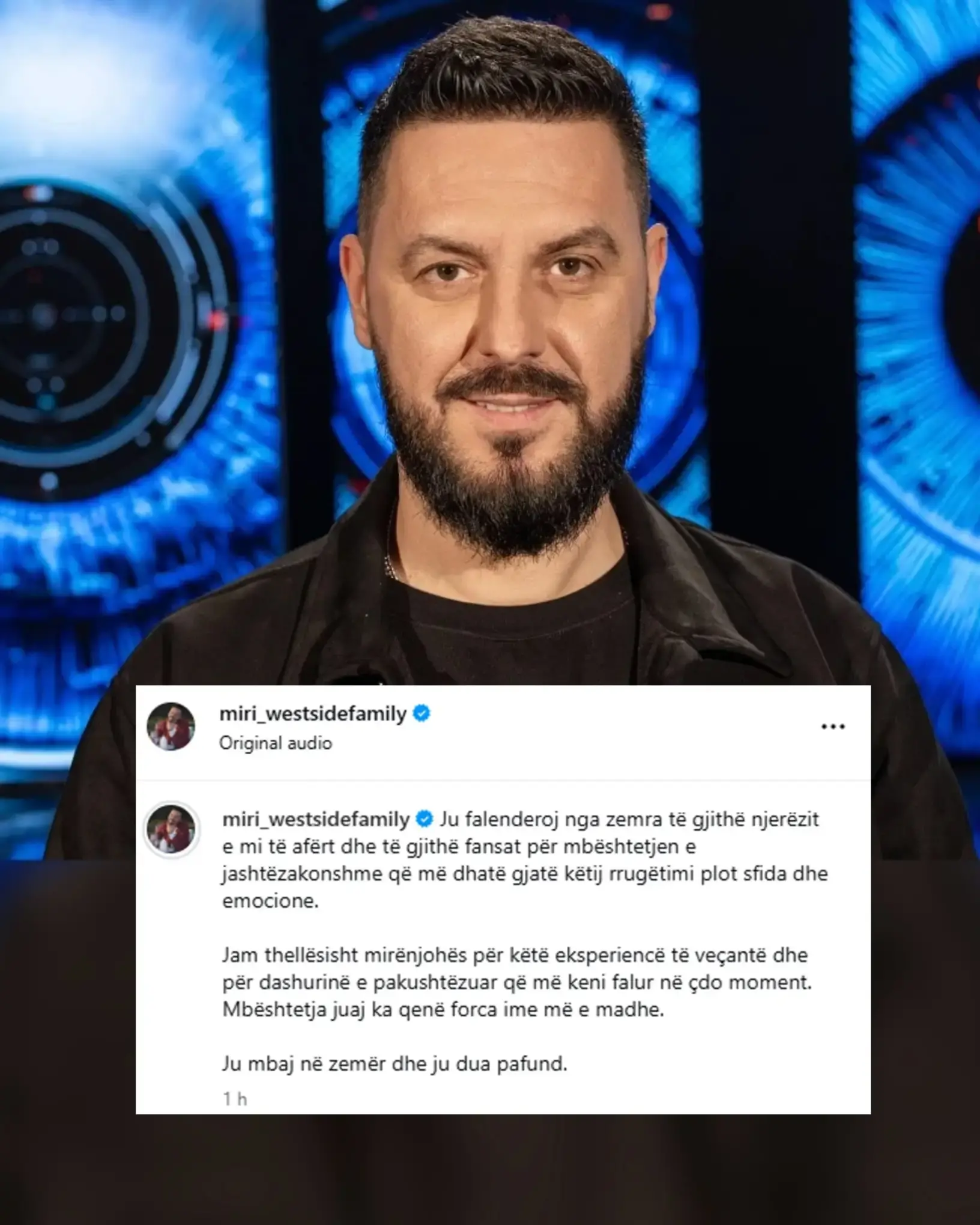 Në publikimin e tij, Miri ka theksuar mirënjohjen për familjarët, miqtë dhe fansat, duke nënvizuar se përkrahja e tyre ka qenë shtysa kryesore për të përballuar çdo moment brenda shtëpisë.