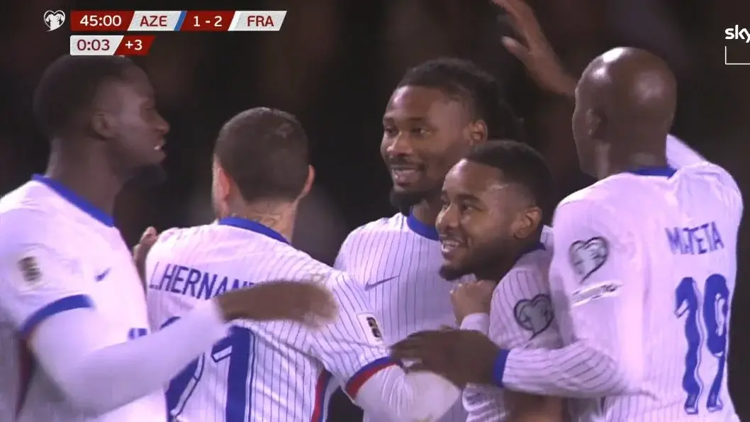 Franca vazhdoi të dominonte ndeshjen, dhe Akliouche shënoi golin e dytë për ekipin e tij në minutën e 30-të, duke përfituar nga një asist i shkëlqyer i Thuram. Në fund të pjesës së parë, një autogol i Mahammadaliyev bëri që francezët ta mbyllin pjesën e parë me një avantazh të qartë prej 1-3.