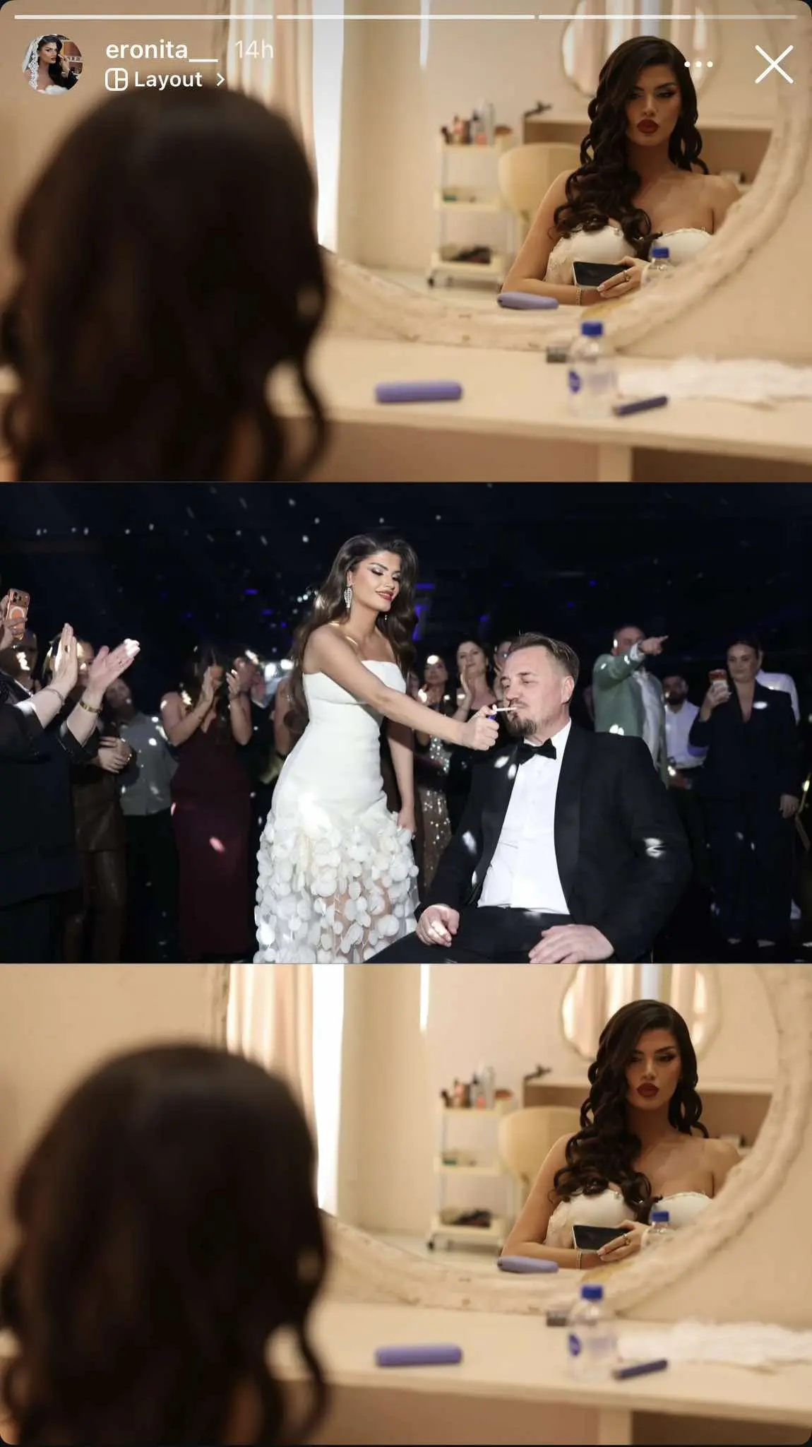 Gjatë një momenti të veçantë, nusja Eronita është parë duke i ndezur një cigare Bleros, i cili në atë moment ishte ulur në karrige.