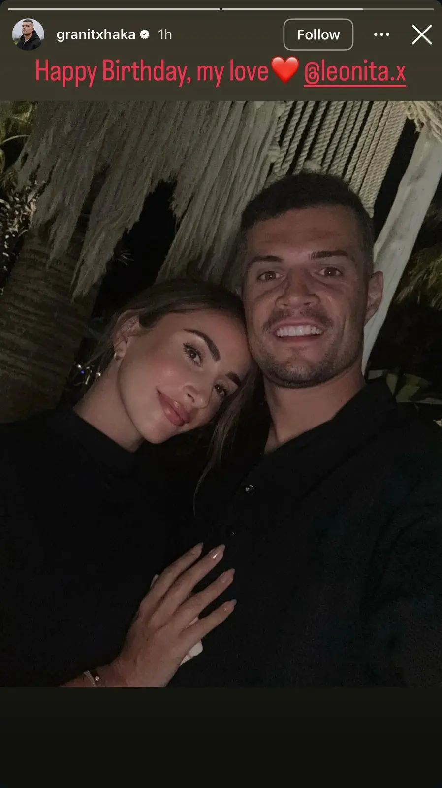 Me një postim të veçantë në Instagram Story, Graniti ka ndarë një moment të bukur me Leonitën, duke postuar një foto ku ata shihen të afërt dhe të lumtur, duke reflektuar dashurinë e tyre të thellë.