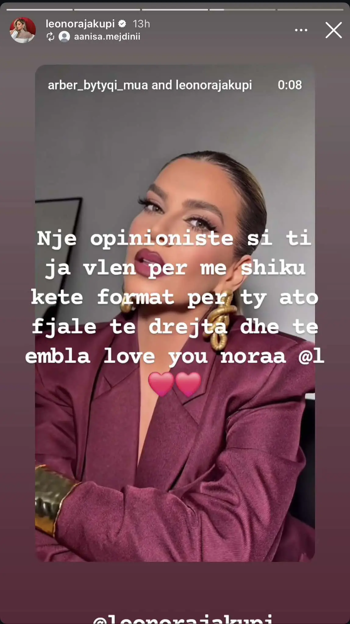 Grimeri Arber Bytyqi, me të cilin Leonora po bashkëpunon gjatë gjithë këtij edicioni, ka ndarë në Instagram disa fjalë mbështetëse për të.