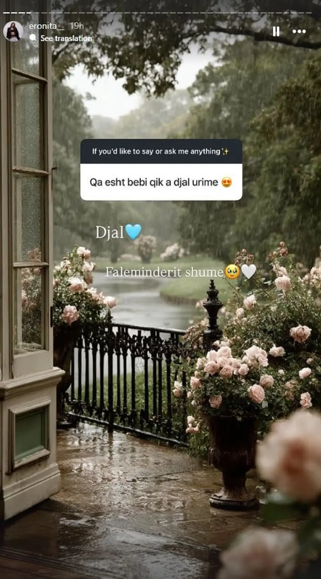 Në një bashkëbisedim virtual, Eronita konfirmoi gjithashtu gjininë e bebit.