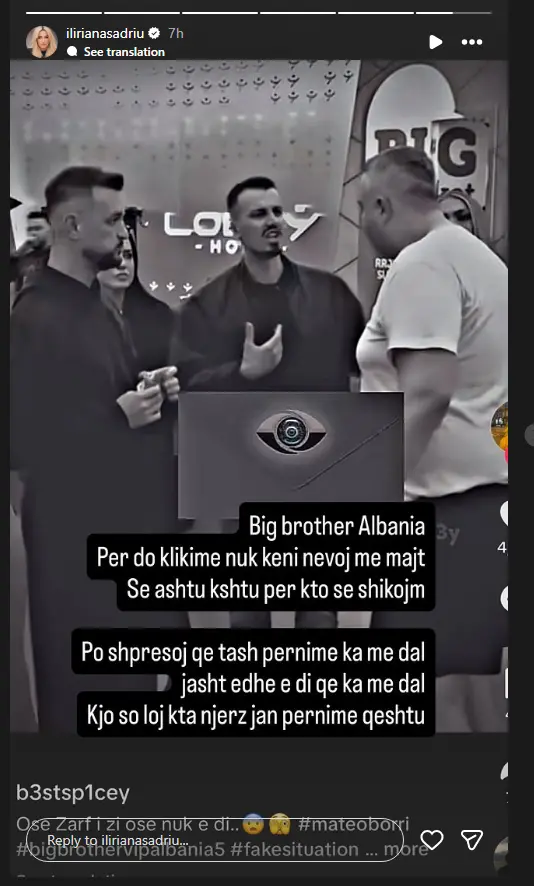 Po shpresoj qe tash pernime ka me dal jasht edhe e di qe ka me dal Kjo so loj kta njerz jan pernime qeshtu”, ka shkruar Iliriana.