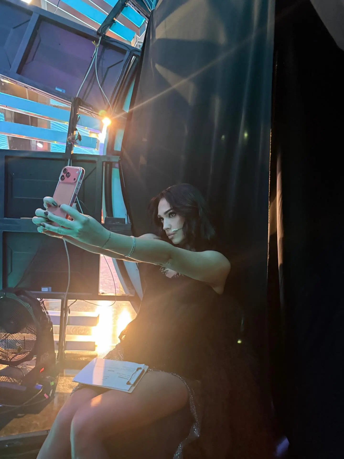 Jonida gjatë publicitetit të spektaklit po e shfrytëzon kohën duke bërë fotografi.