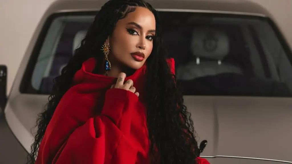 Në këtë imazh, Dafina shfaqet me një pamje dramatike, duke mbajtur një qëndrim të fortë përpara një veture luksoze, gjë që thekson më tej look-un e saj provokativ.